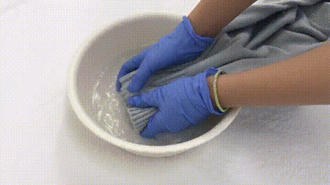 」将护发素与温热的水按照1∶3的比例混合,把毛衣浸泡在其中约10分钟后取出。
