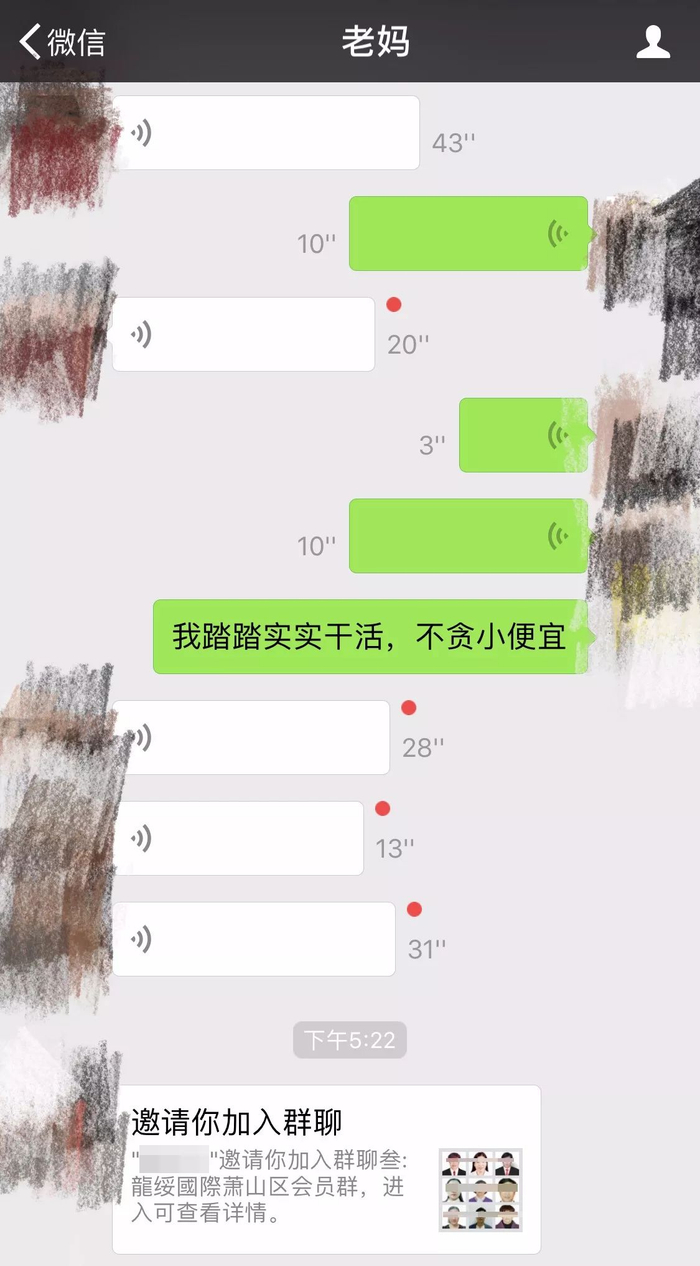 网友的妈妈对“龙绥国际”可谓是深信不疑,并且多次想让女儿加入它的萧山会员群和宁围群。妈妈给女儿发来“龙绥国际”的宣传内容,连发数条超长语音,还说“信与不信,你自己选择,路是自己走的”。