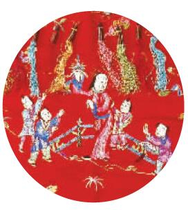 清代京绣婴戏纹镜帘(局部) 图片由中国民间文艺家协会提供