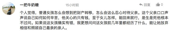 有网友怀疑这个父亲是不是对女儿不好,