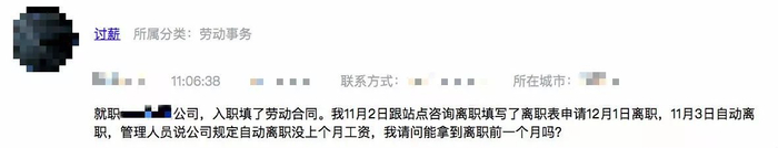 就职某便民服务公司,入职填了劳动合同。我11月2日跟站点咨询离职,填写了离职表,申请12月1日离职,11月3日自动离职。管理人员说公司规定自动离职没上个月工资,我请问能拿到离职前一个月吗?