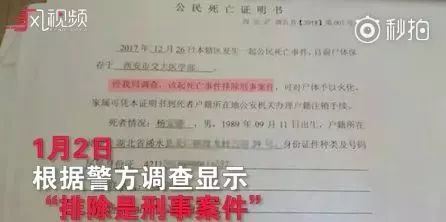 据该报道,西安交通大学药理学博士生杨宝德于2017年12月25日溺水身亡,警方认定,无证据表明系刑事案件。