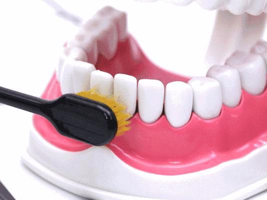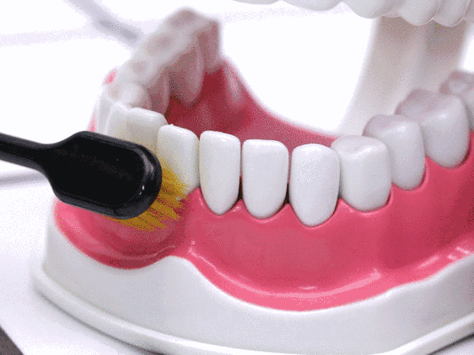 用实际口腔2倍大的模型,演示直上直下刷牙