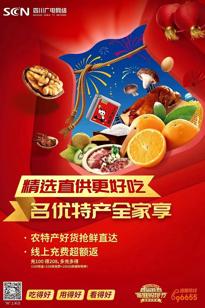 春节将近,四川广电网络还特意调集全省134个分公司精选的各地农特产品,在“视优荟”上打造“吃遍四川”专区,把近200款“最土”、“最鲜”、“最好”的年货,送到千万家庭的新年餐桌上。
