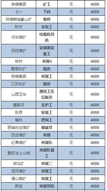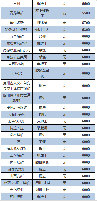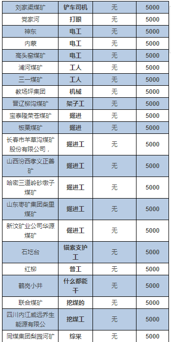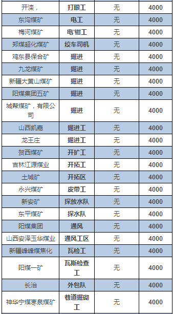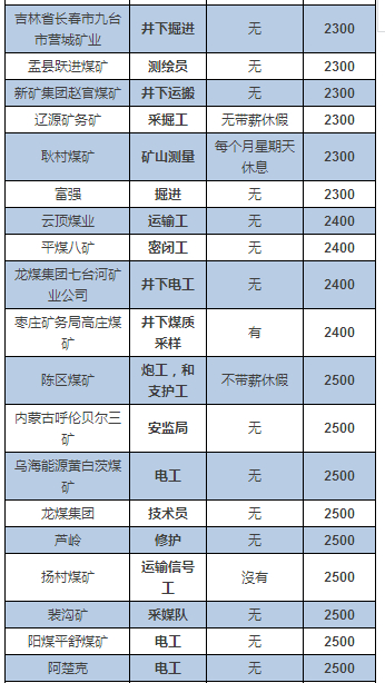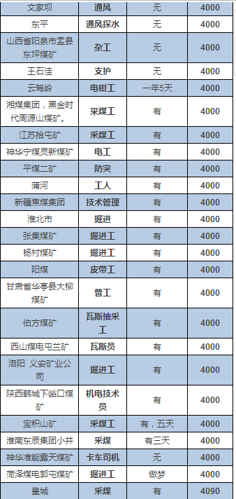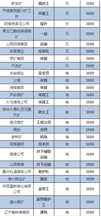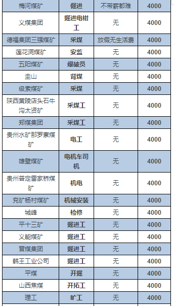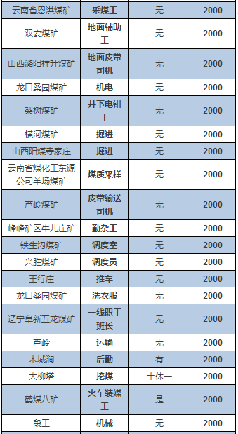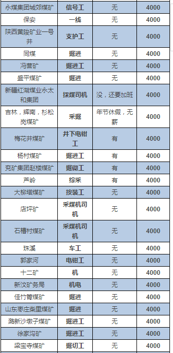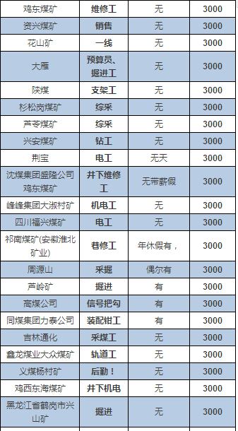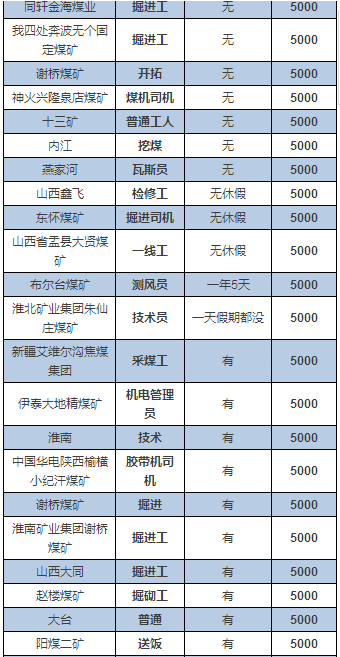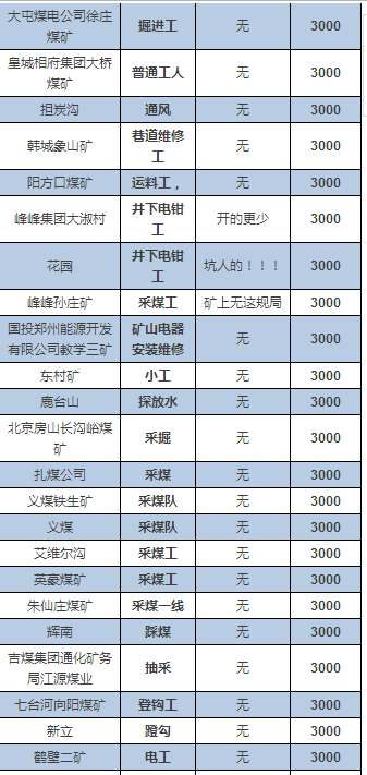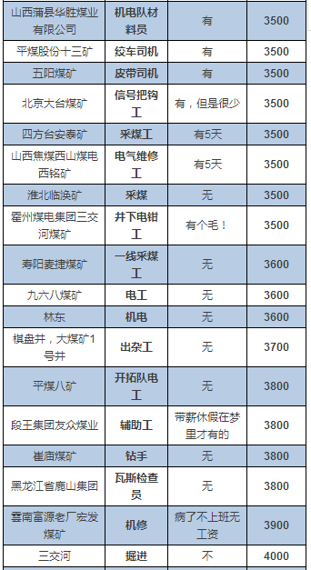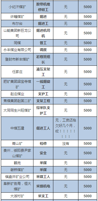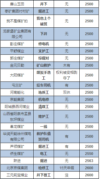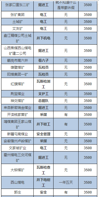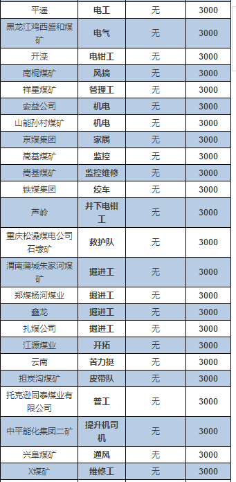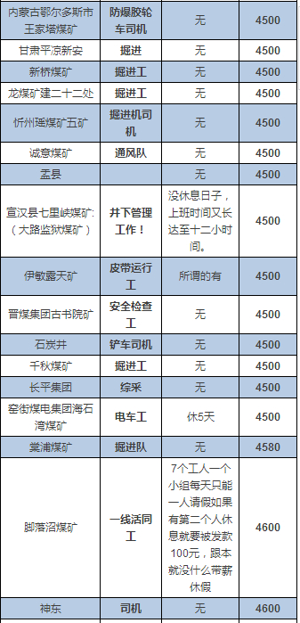 以下图表,是华夏能源网摘取的不同煤矿不同工种的矿工工资情况。