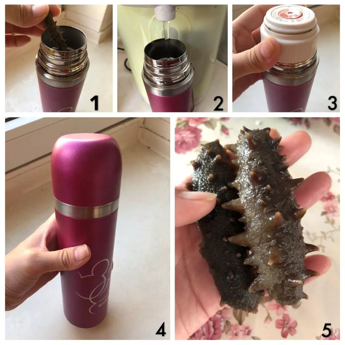 食用方法:采用真空保温杯容器,放入1只速发海参,100度开水满杯冲泡后拧紧杯盖,只需10——12小时开盖即食。晚上冲泡,早晨食用,相比传统干海参发制工序,省时、省力又方便。