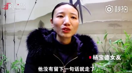 据凤凰网风视频报道,杨宝德女友表示,“我所做的一切就是想给他的死找一个意义。”