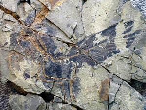 1996年,在辽西热河生物群,中华龙鸟的化石被发现,它具备类似雏鸟的茸羽。随后,在辽西和其他地方,科学家发现了许多带羽毛的恐龙。2009年,最早具对称飞羽的赫氏近鸟龙化石在中国被发掘,它生活在1.6亿年前。