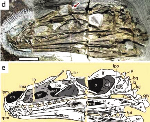 徐星:“巨嵴”指眼眶上面两个角状的结构,这也是比较奇怪的一点。这种装饰性的骨质结构常见于更原始的恐龙,如霸王龙、角鼻龙、双棘龙等肉食性恐龙,但这种有羽毛、跟鸟很接近的恐龙一般就不会再有了。不过,“彩虹”再次说明,生物演化就是这么奇怪,总和人想的不一样。