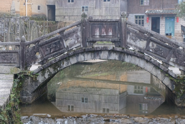 而今,溪边的老街还保留着旧日的韵味:青石板、木房子,从缝隙里冒出的绿草叶,在寒冬中透着一股生机。间或一两家杂货店,大部分还保留着民居功能。老人们悠闲地晒着太阳,男人们忙着干农活,妇女们在溪边洗衣洗菜,水中的鲤鱼则悠然自乐,“闻人声而来,见人景而聚”。