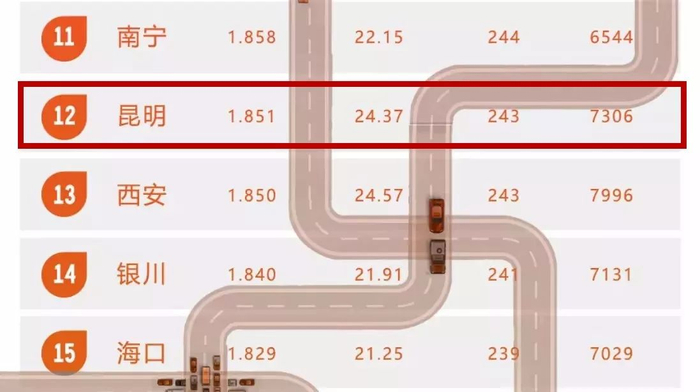 昆明也从去年的第7位降至第12位