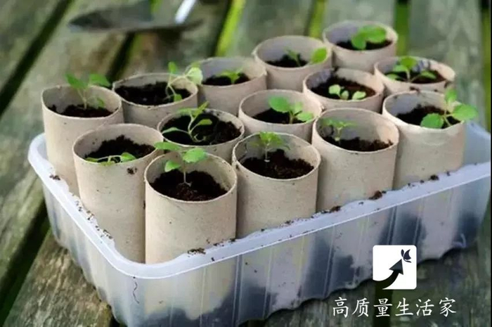 种小型植株时,就可以用卷纸芯,统一放在一个大盒子中,倒入土后就可以撒上种子啦~