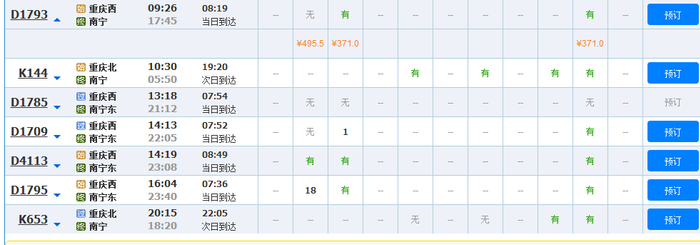 线路:重庆西、贵阳东、桂林北、永福南、柳州、来宾北、南宁东