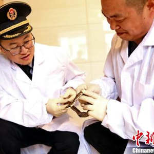 图为:出口短尾蝮蛇临床检疫现场 浙江检验检疫局供图