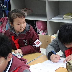 妈妈也不用一直坐在教室陪读了,只需在下课时盯一盯,这是避免“安全隐患”,因为亨亨高高壮壮,课间可能会无意冲撞到低年级小朋友。
