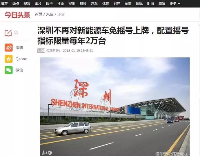 “深圳不再对新能源车免摇号上牌,