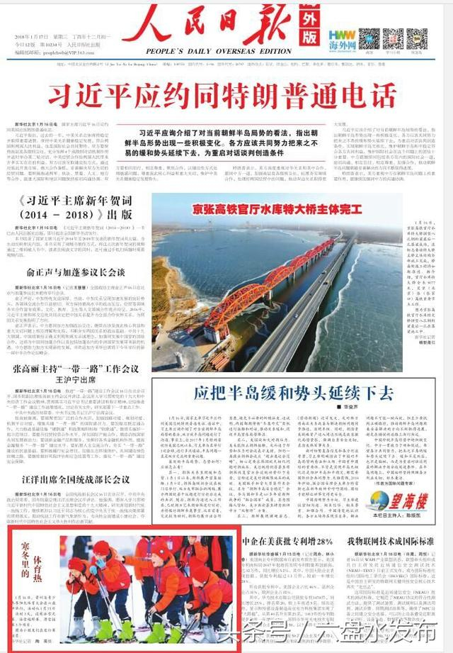 ●1月17日海外版头版以《寒冬里的体育热》配以大图进行报道;