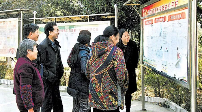1月19日,齐天庙村村民在观看村务公开栏。