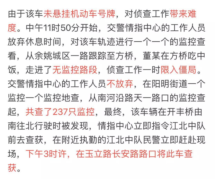 余姚公安交警获悉后,立即组织侦查小组,对该车进行查辑。