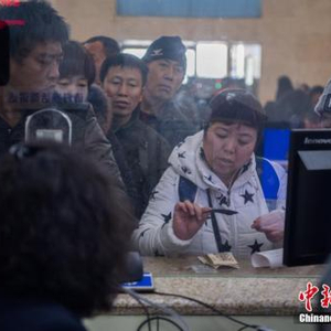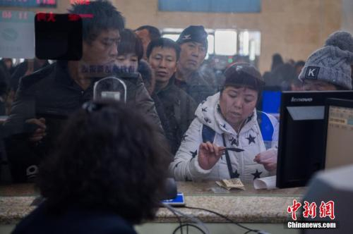 资料图:1月4日,山西太原火车站,旅客在人工售票窗口买到出行的火车票。 中新社记者 韦亮 摄