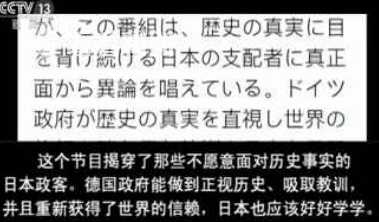 “这个节目揭穿了那些不愿意面对历史事实的日本政客。德国政府能做到正视历史、吸取教训,并且重新获得了世界的信赖,日本也应该好好学学。”