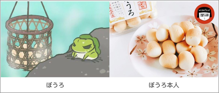 然后我找了一些线索……别人的蛙有在疑似温泉的场景下吃到过「ぼうろ」,其后我又查证了「旅かえる攻略Wiki」上,说这种东西的产地是在别府温泉——别府是九州比较平民的温泉旅游胜地,于是终于找到原来「ぼうろ」就是我们小时候吃的「x 仔小馒头」!