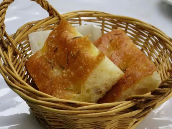 「フォッカチャ」 即意大利文 “focaccia” ,而 focaccia 是意大利产的非常经典的一种松软、厚身的面包,经常里面还带有新鲜橄榄。如果在国内吃意大利餐,经常餐前面包里也作为佐餐面包。