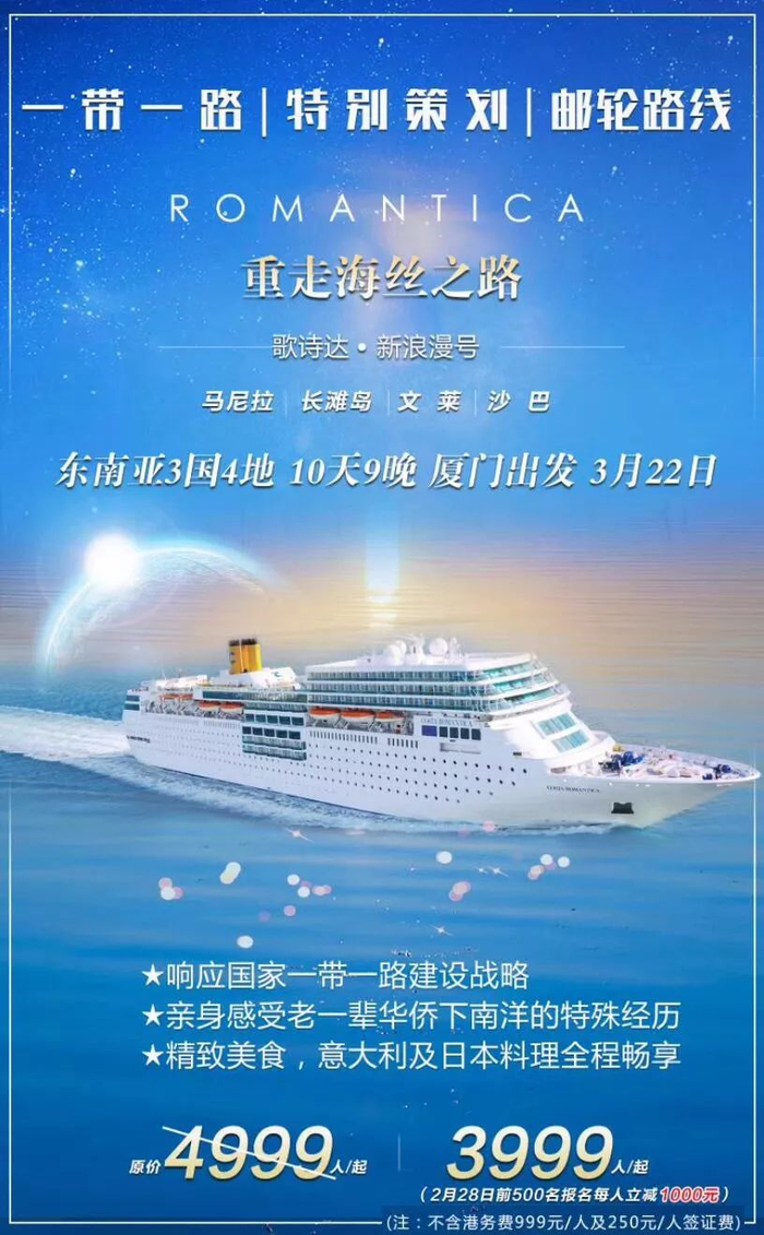 只要搭乘歌诗达邮轮“新浪漫号”