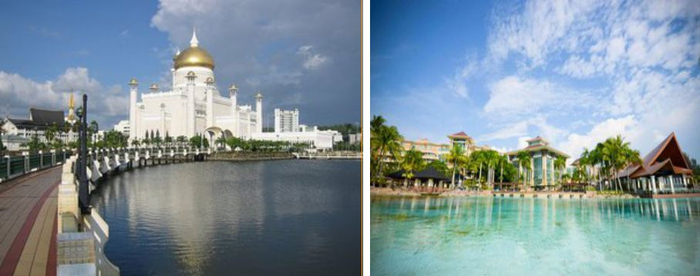 文莱,加里曼丹岛北部亚洲的东南方,北临南中国海,文莱沿海为平原,内地多山地,西部多沼泽,森林占地面积 3/4,形成独特的旅游资源,在这个小国度 ,黑色的石油,翠绿的雨林,闪耀的黄金,奢华而庄严的清真寺,富庶而淳朴的人民以及未经污染的自然风光。