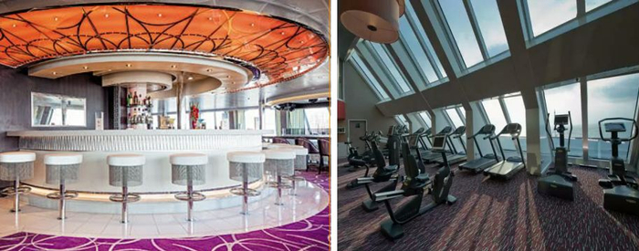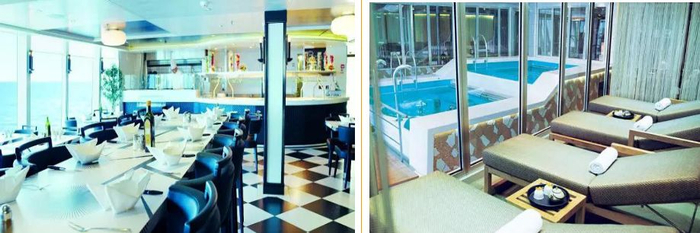 完备齐全的设施,让你体验到唯有在新浪漫号上才有的精致和舒适。除了跑步机、泳池、开放式空气按摩池外,您还可以在健身房、桑拿房、海洋水疗专用的二层水池以及理疗室中得到彻底放松。