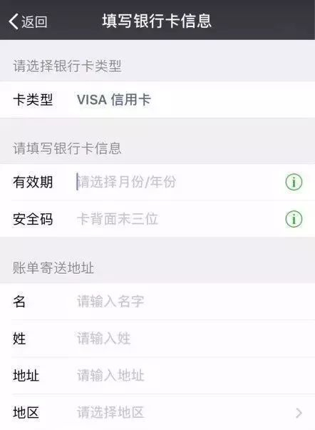 如果是海外银行卡,目前只支持绑定Visa、Master、JCB三种信用卡。在这种情况中,绑定时需要验证卡号、有效期、CVN2。