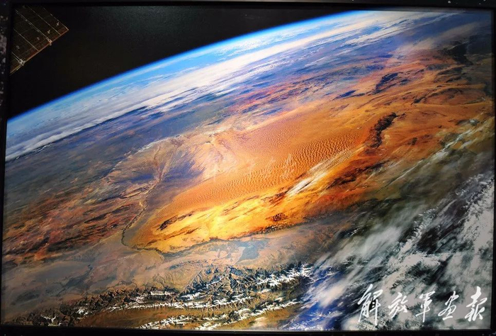 《 天宫望乡》摄影/ 景海鹏、陈冬(“强军路上新风采”全军摄影展作品)