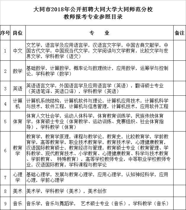 (一)招聘计划:大同市2018年公开招聘大同大学大同师范分校教师30名。