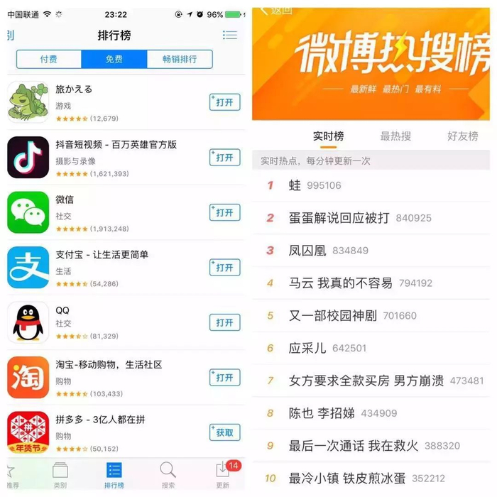 截至1月22日晚间,这款游戏成功登顶了ios免费排行榜冠军,微博热搜也飚至第一。