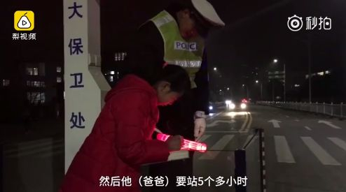 4、好暖心!女孩寒夜陪父站岗:和爸爸聊天不觉冷
