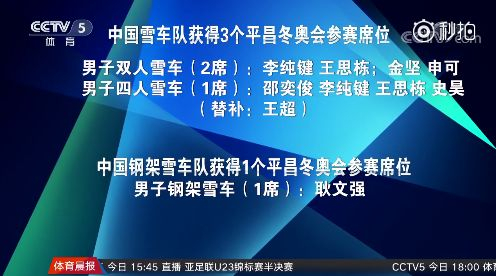 前天,国际雪车联合会公布,首次组建的中国雪车队和中国钢架雪车队共获得4个平昌冬奥会参赛席位,他们将历史性地首登冬奥会赛场。中国雪橇、雪车和钢架雪车队2015年才成立,目前,选手们正在瑞士进行紧张备战。(@CCTV5)