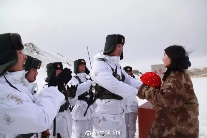 1月19日,在祖国最西端的新疆克孜勒苏军分区某边防连排长欧阳华毅,在雪域边关的25号界碑前,向其恋爱3年且刚从南京赶来的女友王璇求婚!在雪山界碑和战友的见证下,一束自制的手捧花和一枚自制项链,让王璇感动得泪流满面…你愿为他们送去祝福吗?(@军报记者)