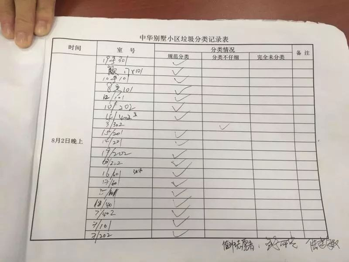 志愿者记录下的居民垃圾投放分类情况