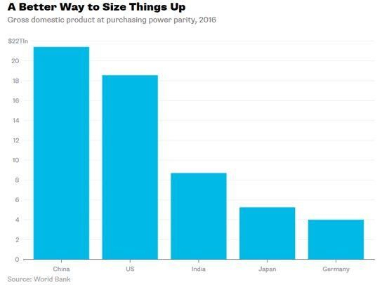 听到这个时,许多人可能会抗议。毕竟,从上面的排名可以得知,以市场汇率衡量GDP,美国仍然是最高的。