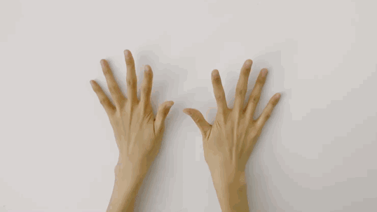 双手及手指完全展开,再缓慢握成拳头,大拇指翘起,不要太过用力。然后慢慢将手指展开,恢复到最初位置。双手各重复10遍。