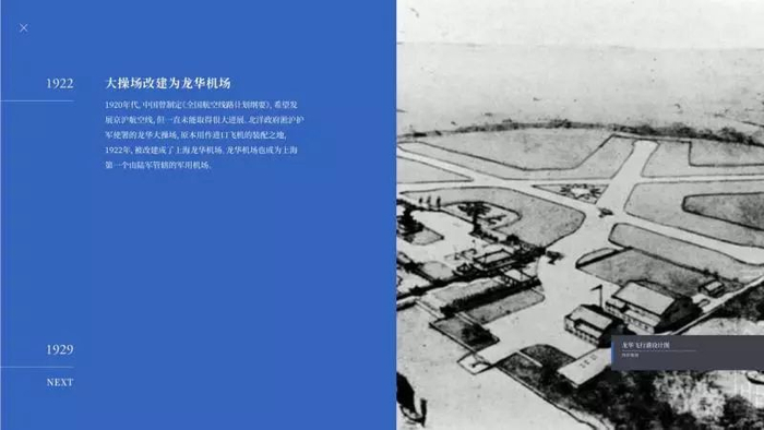 1922年,黄浦江边的龙华大操场开辟为机场,龙华机场成为上海第一个陆军管辖的军用机场。西岸集团提供给上观新闻的龙华机场早期飞行设计图(如下图),显示了最初对机场的设计构想。