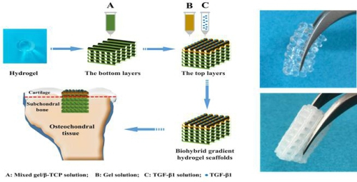 近日,中国科学院深圳先进技术研究院生物医药与技术研究所人体组织与器官退行性研究中心副研究员阮长顺课题组,与天津大学材料学院教授刘文广团队合作,在三维打印构建骨/软骨一体化修复支架研究中取得进展。该团队首次运用直接一步法3D打印技术构建生物活性梯度的高强度水凝胶,实现一体化仿生骨-软骨双相结构,并证实其体内外具有同时促进骨-软骨修复能力。相关研究成果以Direct 3D Printing of High Strength Biohybrid Gradient Hydrogel Scaffolds for Efficient Repair of Osteochondral Defect为题,发表在Advanced Functional Materials上。