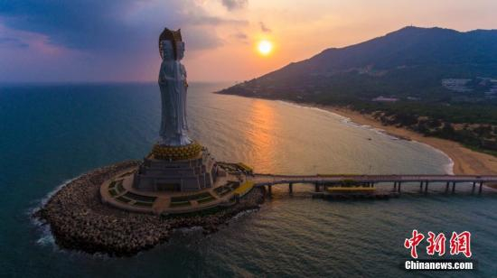 资料图:海南省三亚市南山景区108米海上观音像。 骆云飞 摄