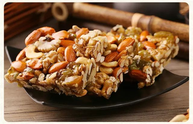 现代切糕则铺满了各种有趣的坚果,变成一种营养价值高到震惊的滋补小零食。