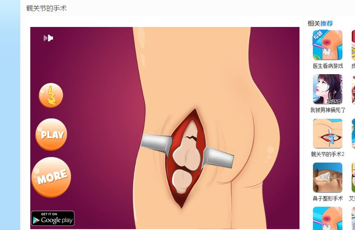 在7k7k小游戏网查询发现,在该网站搜索“艾莎”后,“艾莎受伤的手”、“艾莎生宝宝”位列冰雪奇缘游戏前三名。在首页的“医生看病”栏目中,可以轻易进入植皮、髋关节、剖腹产、膝盖、阑尾炎、心脏、眼部、脚踝、整形等手术游戏,其中剖腹产手术排行靠前。