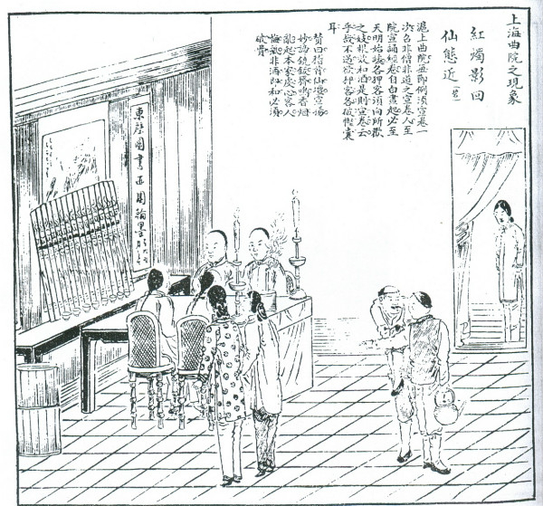 当讲唱宣卷的性质已变为商业演出,宣卷艺人们便不再是照本宣科,为了追求演出效果,他们往往在段落间即兴穿插其他内容,是为“插花”。至于演出的场合,也早已不局限于寺庙之内,在江南这一富庶之地,有钱人家会在节庆聚会时请宣卷艺人上门表演助兴。晚清小说《官场现形记》中,山东候补通判陶子尧在上海参加寿宴,便是“喊了一班人,在堂子里宣卷。单他一个,摆了一个四双双台,有些不认得的人也都拉来喝酒”。江南地区宝卷故事的主人公时常为小人物和女性,这使得宣卷演出广受妇女们的欢迎,许多识字不多的妇女,却对宝卷中的字句唱词烂熟于心,在宣卷演出时常能应和。彼时的茶馆、戏楼甚至妓院,都会定期请宣卷班子前来表演。