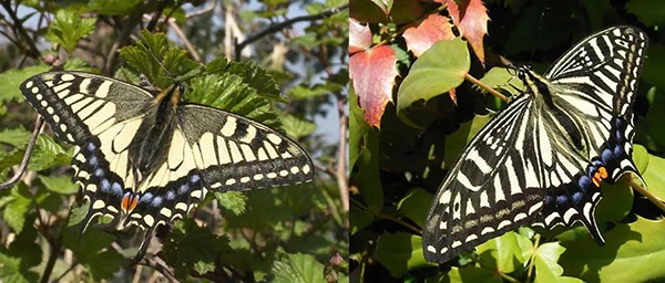 左:金凤蝶,右:柑橘凤蝶(注意前翅内侧花纹)。图片来源:http://www.insects.jp/kon-tyoageha.htm