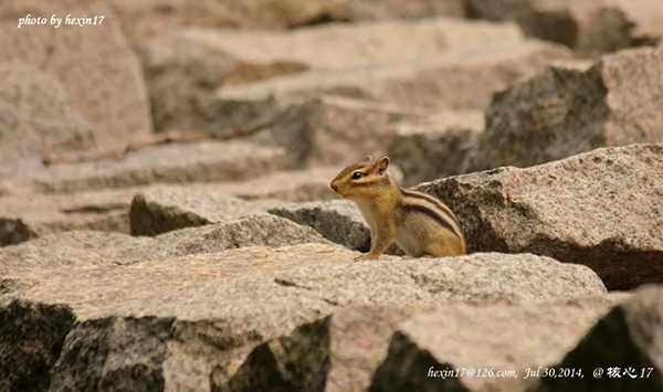 花鼠本尊(眼部周围的条纹是它们明显的特征,明信片中也能隐约看到松鼠们特有的大尾巴)。核心摄