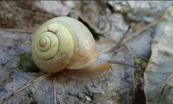 日本常见的蜗牛包括3种:三条蜗牛壳上有一条深色条纹,扁蜗牛壳几乎无条纹,薄皮蜗牛的壳具斑点状条纹。