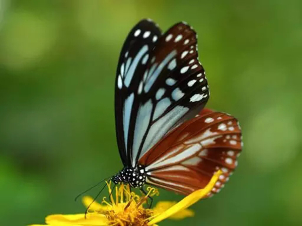 日本常见的青色系蝴蝶有青凤蝶和青斑蝶,从头部和胸部的有斑纹判断,经常陪伴你们蛙蛙的小蝴蝶大多数就是青斑蝶。